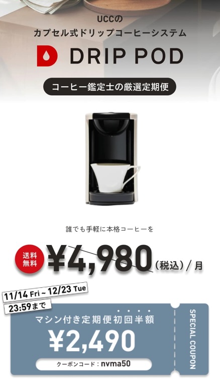 公式サイトの定期便ならマシン付きで月額2,490円〜から始められます!