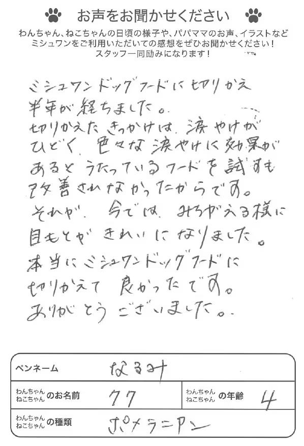 ※ミシュワンは小型犬用フードを使用した医師104名を対象に「健康な犬の飼い主から、当製品を使用してみたいかどう思うか相談された場合、当製品を推奨しますか?」と聞き、「(とても)良い製品だと思う」と回答した割合。2022年9月ベッツアイ調べ