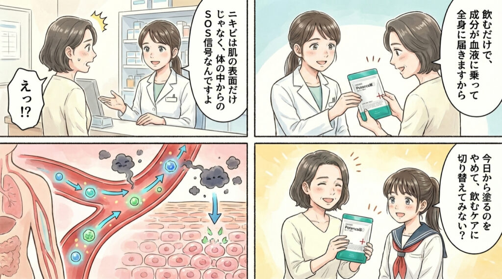ニキビが出来にくい肌にしてくれるんです。