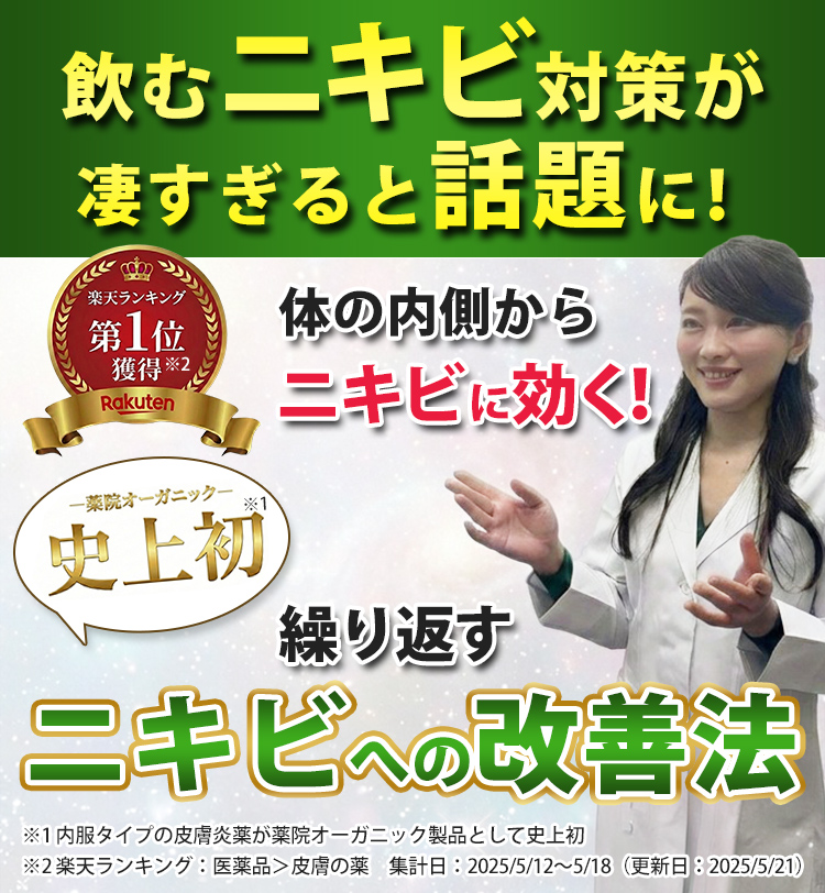 ※内服タイプの皮膚炎が薬院オーガニック製品として史上初